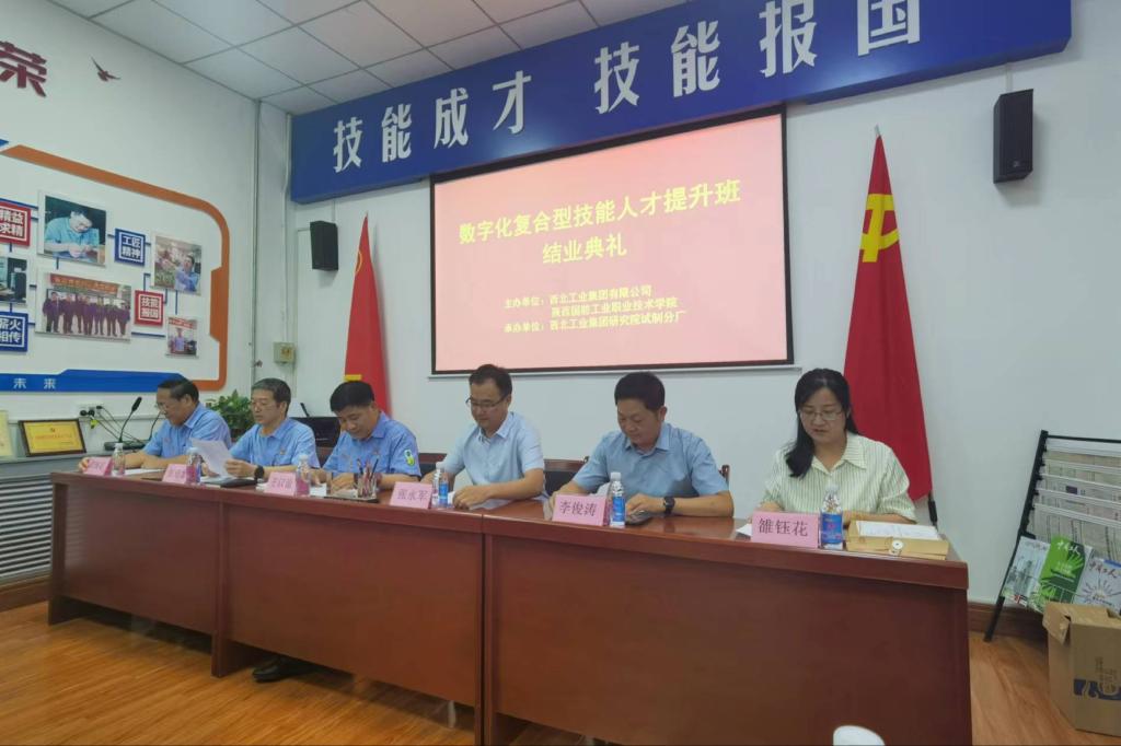 8月23日上午,我校与西北工业集团有限公司联合开展的企业新型学徒制培训班(数字化复合型技能人才提升班)结业典礼在张新停技能大师工作室举行。中国兵器动能毁伤研究院副院长王议论、试制厂厂长段战军、副厂长薛军,我校副校长张永军、智能制造学院相关负责人、授课教师代表以及新型学徒制学员共同参加结业典礼仪式。会议由西北工业集团有限公司人事部党支部书记张培龙主持。