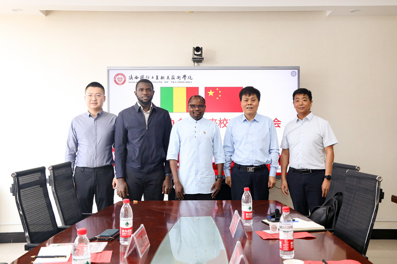 在自由交流环节,胥航军介绍了我校中泰“经世学堂”“秦岭工坊”海外办学项目进展情况。迪亚拉表示希望双方可以借鉴我校海外办学经验,依托我校专业优势、师资优势在马里打造海外技术技能培训基地。刘敏涵对迪亚拉的提议表示赞赏,并邀请马方师生来校培训交流。双方达成合作共识。