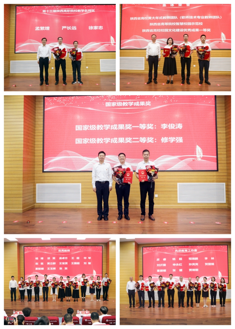 在过去的一学年,我们全体师生携手并进,取得了丰硕的成果。我校3部教材入选首批“十四五”职业教育国家规划教材名单,1门课程获批国家在线精品课程,4个国家级专业教学资源库通过验收。我校取得了国家级教学成果奖一等奖、“互联网+”大赛国赛金奖,全国服务型制造应用技术技能大赛一等奖,陕西省高校校园文化建设优秀成果一等奖,实现了我校历史性突破。我校学生在全国各级各类技能大赛中获奖165项;学校获批陕西省军民融合示范高校建设单位,党建、教学、人才队伍、校企合作、科研、社会服务、招生就业等方面都取得了可喜成绩,收到上级表彰奖励。全体教职工将在新的学年里,继续发扬敬业奉献、追求卓越的精神,以受表彰的集体和个人为榜样,不断增强责任感、使命感,勇于担当、砥砺奋进,为学校发展作出新的更大贡献。