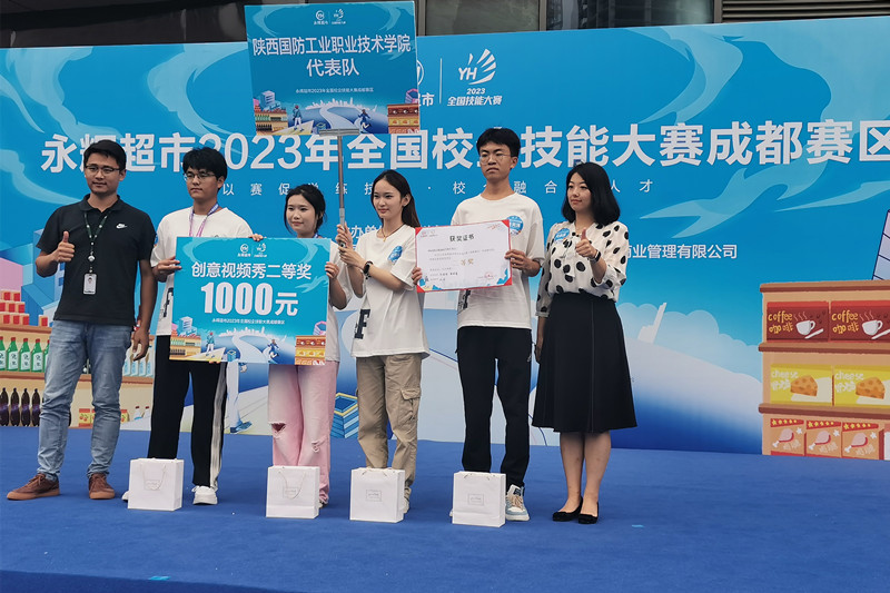 9月14日,永辉超市2023年全国校企技能大赛成都赛区在永辉文华广场店进行,大赛来自四川商务职业学院、成都职业技术学院院等9所院校参赛40余名学生,经济管理学院选派4名选手分别组队参加视频秀和创意陈列两项比赛。大赛突出“实战”和“创意”特色,校企双导师(教练)联合指导,参赛选手在门店现场通过“陈列选题”、“创意陈列”、“陈述与展示”、“专家提问问答”等几个环节的比拼,由企业高管、特邀专家和院校代表现场评分,最终由韩硕豪、陈媛媛团队获得视频秀二等奖,任天泽、庄晓彤、韩硕豪团队获得创意陈列二等奖,我校获得团体二等奖。