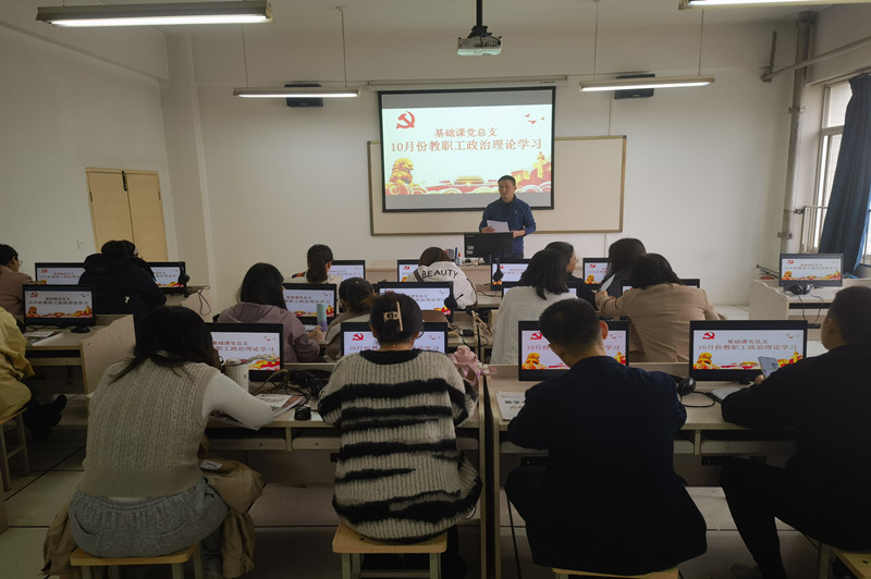 【基础课党总支】根据陕国职党宣〔2023〕15号文件《关于2023年10月教职工政治理论学习暨组织活动安排的通知》相关要求,为进一步加强基础教职工的政治理论学习,切实提高教职工政治素质和理论水平,基础课党总支于2023年10月12日在北区5-607语音室开展10月教职工政治理论学习,会议由党总支书记权华主持。