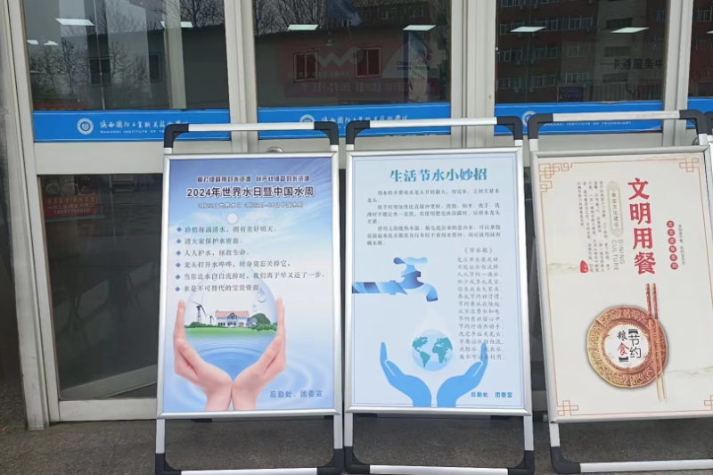 活动伊始,校园内悬挂了节水主题的宣传横幅,这些横幅分布在教学楼、行政楼及家属院等人醒目地方,时刻提醒着师生们珍惜水资源,节约用水。同时,校园内各处张贴了节水标语,以简洁明了的语言传递着节水的重要性。此外,志愿者还印发了节水传单,详细介绍了日常节水技巧和节水知识,让师生们在日常生活中能够轻松实践节水行动。