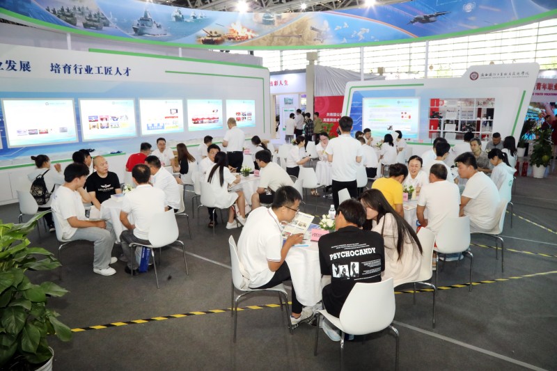 我校在2号馆设立特型展位,以全新面貌亮相本届教博会。展区设计庄重大气、清新高雅,以校园文化标识和国防元素彰显了学校军工特色。通过壁挂灯箱展板、图文画册、师生作品展示、LED显示大屏系统展示的大量图文和视频,详细展现了我校“双高建设”“大思政课”建设成果,以及学校在人才培养、科学研究、国际交流、文化传承、社会服务等工作中的特色亮点和取得的丰硕成果。展示区学生的技能作品,吸引了众多考生和家长驻足咨询、欣赏。