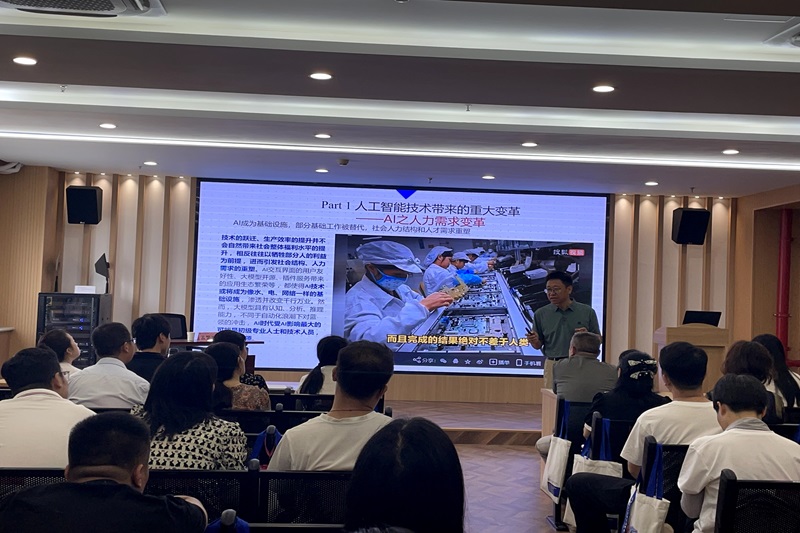 我校副校长孟繁增教授以《人工智能技术助力职业教育数字化转型 》为题,从人工智能技术带来重大变革、AI时代职业教育的机遇与挑战等方面讲授为适应人工智能发展,教师应该具备的素养和能力。