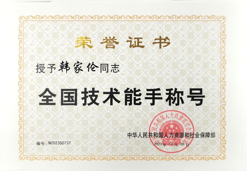 “全国技术能手”称号是国家技能人才领域的最高政府奖项之一,由国家人力资源和社会保障部颁发的荣誉称号,主要两种方式授予,一是行业企业技术技能突出人才,在技术革新、技术改造中作出重要贡献并取得显著经济效益和社会效益的个人,经省级评审后,向人社部推荐评选;二是表彰在国家职业技能竞赛中取得优异成绩的选手,每两年颁发300人左右。这些条件体现了评选过程的严格和标准的高要求,确保了“全国技术能手”称号的权威性和含金量。获得这一荣誉的选手不仅在技能上有着卓越的表现,而且在职业道德、团队协作等方面也有着良好的素质,激励广大技能劳动者积极参与技能培训和提升,推动高技能人才队伍的建设,促进社会经济健康发展。