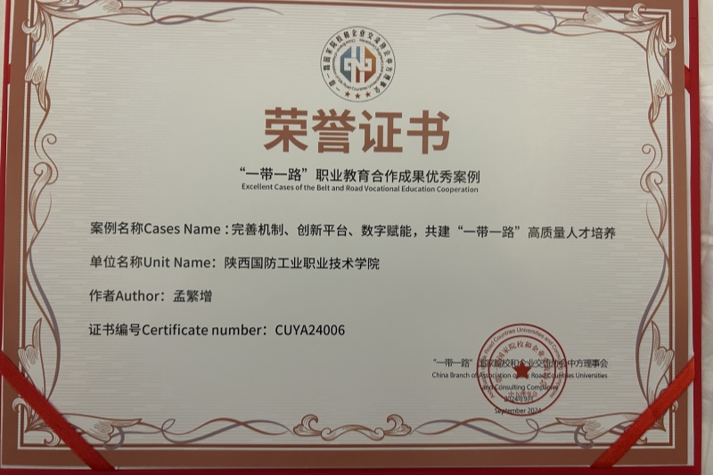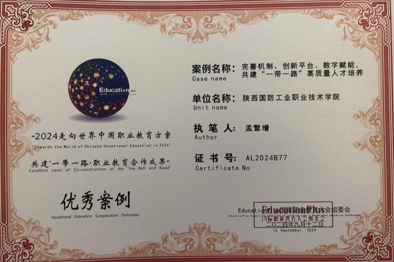 我校荣获“2024职业教育对外交流与合作”典型院校,由我校副校长孟繁增执笔的案例《完善机制、创新平台、数字赋能,共建“一带一路”高质量人才培养单位》荣获“2024走向世界中国职业教育方案——共建‘一带一路’职业教育合作成果”优秀案例。
