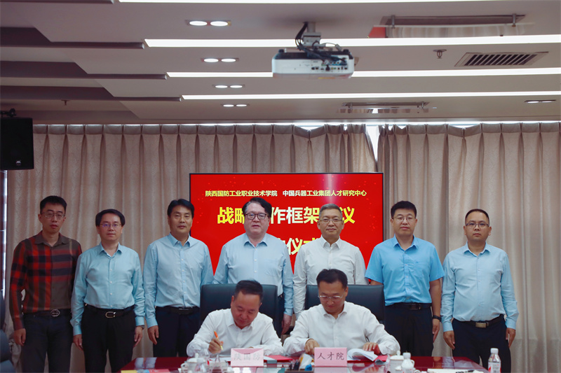校党委副书记杨聪、人才院副院长杨国顺分别代表学校和人才院签署了战略合作框架协议。学校将以此次合作为契机,加大与中国兵器工业集团以及下属企业深入合作,创新产学研用融合发展、产教融合协同育人的体制机制,联合培养复合型技能人才,服务国防工业现代化建设和行业发展,建设军工特色鲜明的高职院校。