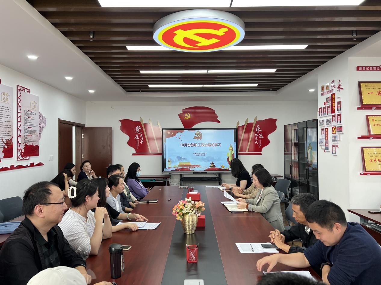 【基础课党总支】根据陕国职党宣〔2024〕17号文件《关于2024年10月教职工政治理论学习暨组织活动安排的通知》相关要求,为进一步加强基础教职工的政治理论学习,切实提高教职工政治素质和理论水平,基础课党总支于2024年10月16日在北区5-607语音室开展10月教职工政治理论学习,会议由党总支书记权华主持。