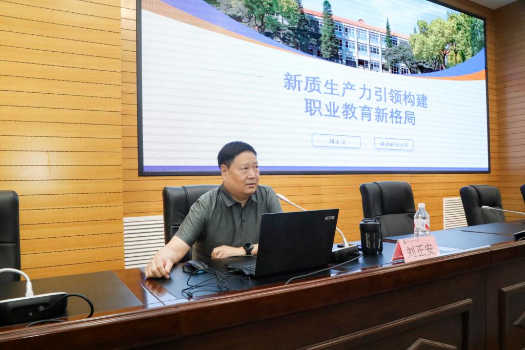 8月20日下午,陕西科技大学教育学院、职业技术学院原院长刘正安教授做了题为“新质生产力引领职业教育高质量发展新格局”的专题报告,他从新质生产力的提出及特征、新质生产力与职业教育发展的关系,以及新质生产力引领职业教育发展等三个方面,讲授了在当前百年未有之大变局的背景下,通过聚焦新质生产力引领职业教育高质量发展新格局的新路径。