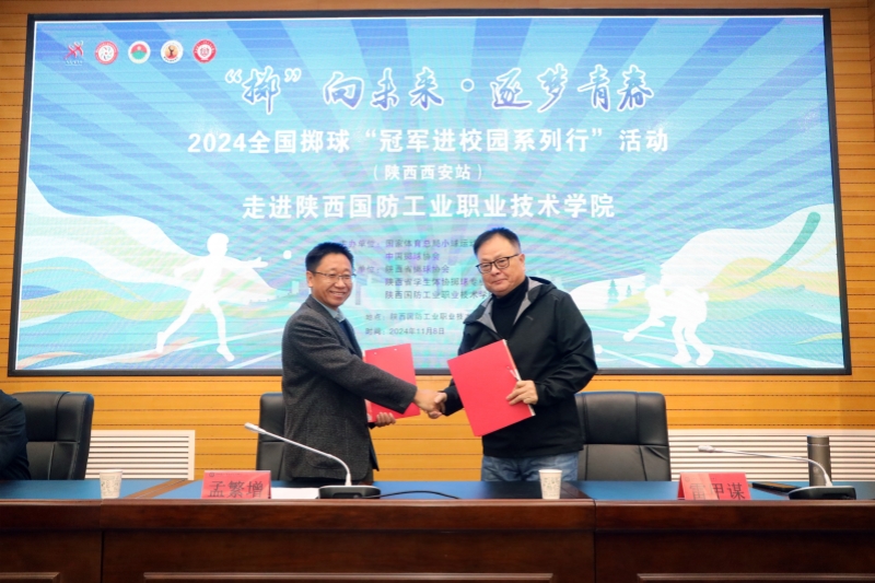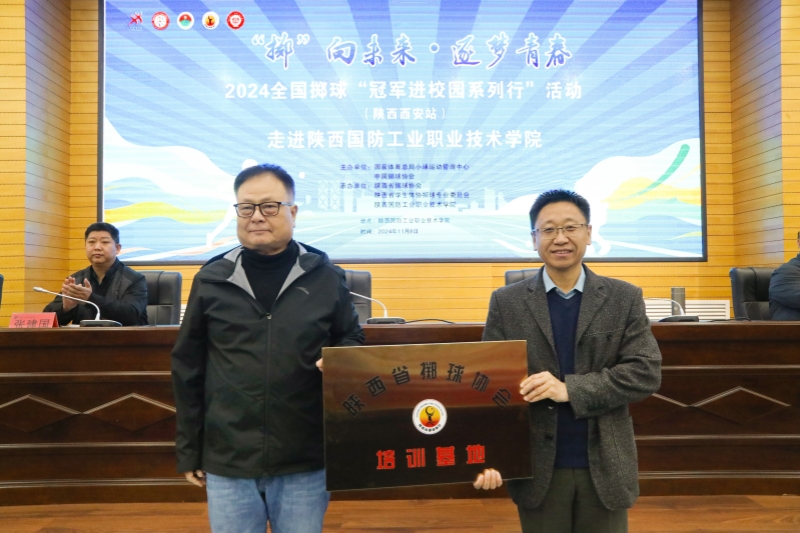 陕西省掷球协会与我校签订战略合作协议,陕西省掷球协会主席雷甲谋授予我校“陕西省掷球协会培训基地”。
