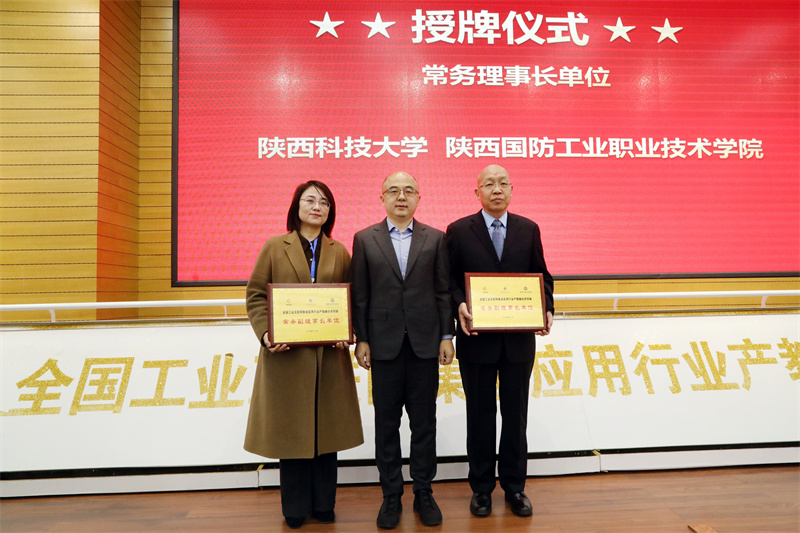 随后举行了授牌仪式,北京华航唯实工业软件科技有限公司副总经理李姗姗、陕西科技大学电智学院党委书记吕文华、betway必威中文正版副校长刘少阳领取了理事长单位、常务理事长单位。