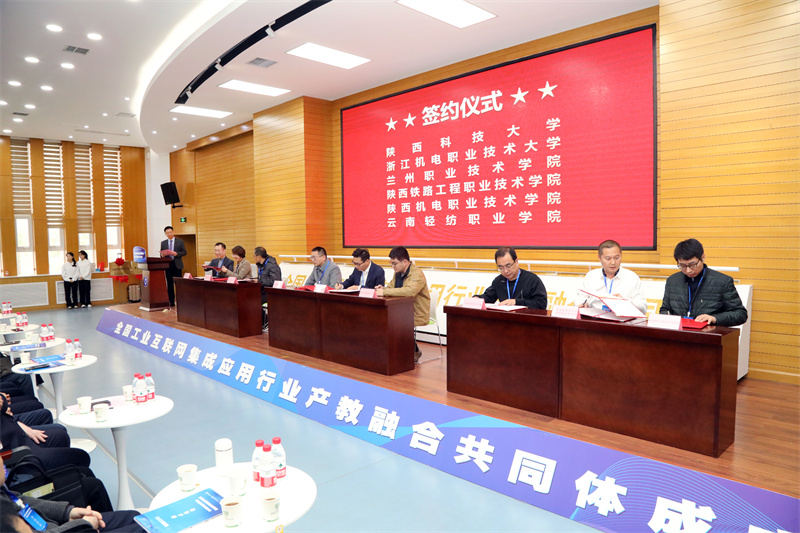 一批产教融合、校企合作项目在大会现场签约,陕西科技大学、浙江机电职业技术大学、兰州职业技术学院、陕西铁路工程职业技术学院、陕西机电职业技术学院、云南轻纺职业学院等院校代表上台签约,诠释了大会“产教融合、科教融汇、共同发展”主题和共同体成立的宗旨。
