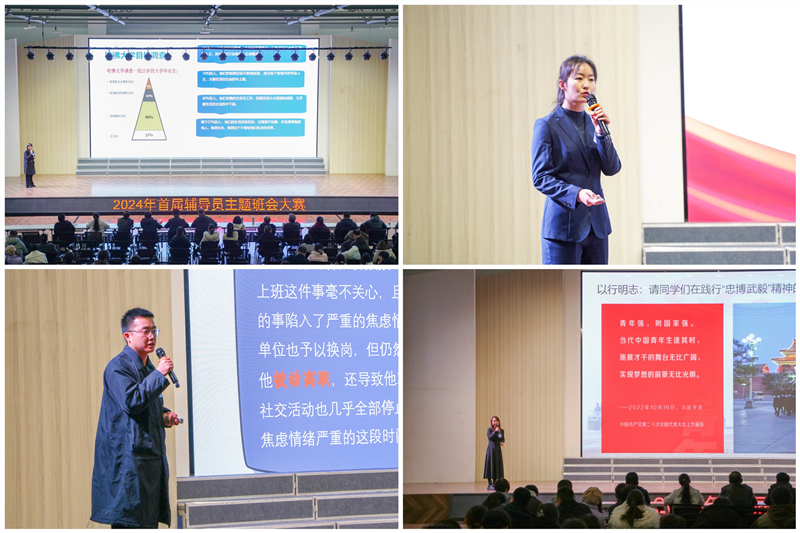 决赛现场,参赛辅导员们围绕爱国主义精神、学业生涯规划、红色文化传承、国防科技教育等11个主题,精心设计了班会方案,并进行了生动的现场展示。他们巧妙构思,运用图片、视频、小组探讨等多种形式,将理论知识与实践案例相结合,为学生们呈现了一堂堂精彩纷呈的主题班会。