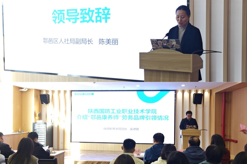 活动第一阶段为西安市市级劳务品牌授牌仪式。活动伊始,陈美丽进行致辞,接着我校继续教育学院院长吴德君介绍“鄠邑康养师”劳务品牌创建引领情况。