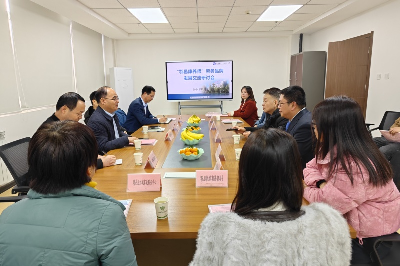 活动第二阶段与会领导首先参观了我校“鄠邑康养师”实训基地,随后在博逸楼401室召开“鄠邑康养师”劳务品牌发展交流研讨会,与会代表积极建言建策。张战仓强调了劳务品牌建设的重要性以及通过品牌引领实现高质量就业的必要性。吴强指出“鄠邑康养师”作为一个全新的职业概念,不仅有助于推动区域经济和社会发展,还将为广大求职者打开新的就业窗口,特别是对于促进高校毕业生的就业具有重要意义。