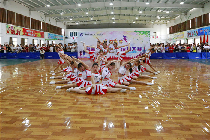本次大赛分为排舞规定、排舞自选串烧两个环节。来自十一个二级学院的300多名选手们认真投入比赛,用饱含热情的舞蹈彰显了我校大学生的青春活力,诠释了健与美的无穷魅力。比赛中选手们身着统一的服装,在赛场上尽情舞蹈,诠释 “健康、阳光、时尚、快乐”的比赛主题,展示大学校园的蓬勃朝气。比赛项目含必选规定曲目《尖叫》和自选串烧舞蹈,必选规定动作刚劲有力、整齐划一,活力四射;自选串烧舞蹈则造型各异、风格多样,融古典舞、民族舞、现代舞、爵士舞等多种舞种,青春洋溢。比赛中还穿插有街舞表演。