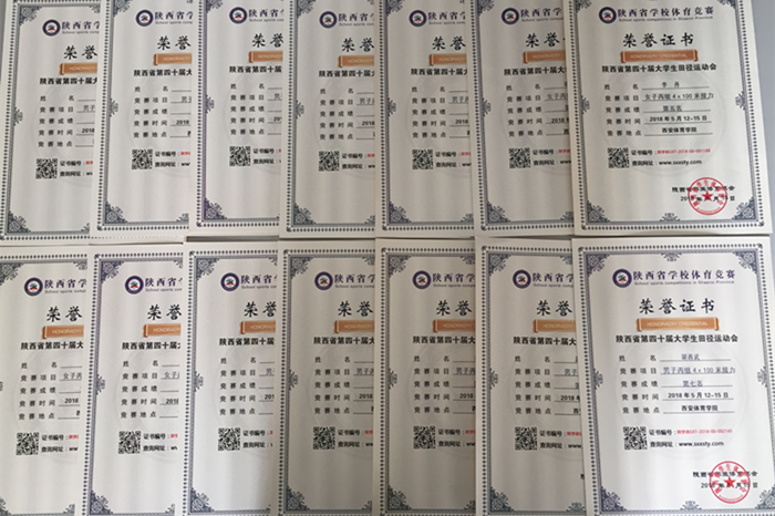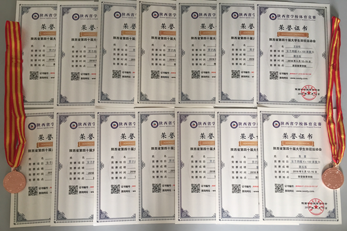 2018年5月12日至15日,陕西省第40届学生田径运动会在西安体育学院举行。经过四天激烈的角逐,我校田径队运动员韩帅在比赛中取得丙组男子400米栏铜牌、范英杰获男子1500米铜牌;由王会怡、胡格格、张甜、李丹四名同学组成的4×100米女子接力团队获比赛第4名,另外还取得链球、跳高、800米、男女全能等多项前八名的优异成绩,我校代表队同时获得本届运动会“体育道德风尚奖”,充分展示了我校学生的竞技水平和体育道德风貌,为学院争得了荣誉。