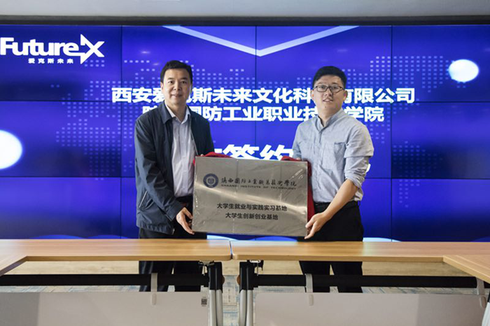 5月9日上午,我校艺术学院与西安爱克斯未来文化科技有限公司校企合作签约暨揭牌仪式在西安爱克斯未来文化科技有限公司总部举行,旨在打造西安首家大学生就业创业孵化平台。我校党委副书记王明哲、爱克斯未来公司总经理曹文华出席揭牌仪式,艺术学院院长惠晓钟和艺术学院师生代表参加仪式。