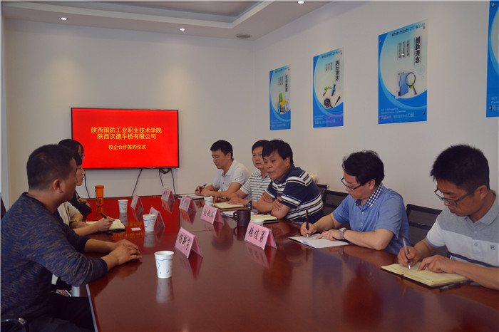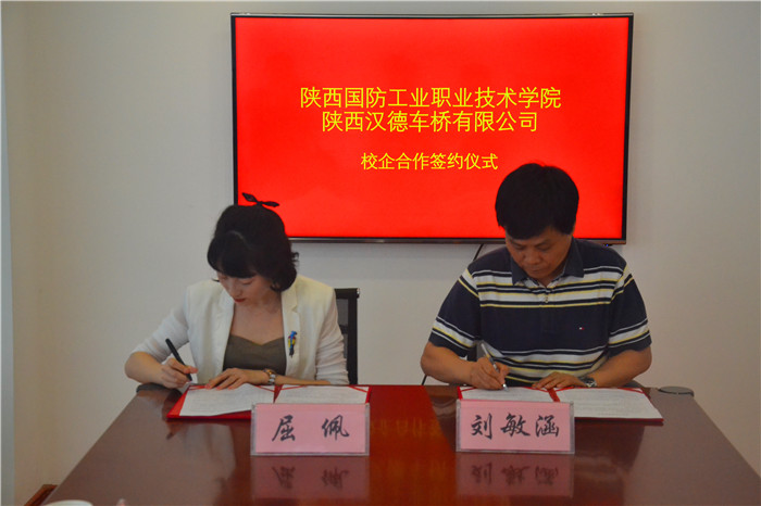 为了进一步深化产教融合,扩大校企深度合作内容,促进人才培养供给侧和企业需求侧结构要素全方位融合,2018年5月4日上午,机械工程学院与陕西汉德车桥有限公司在我校举办了校企合作签约仪式。副院长刘敏涵、陕西汉德车桥有限公司人力资源与企业管理部部长屈佩、教务处副处长张俊勇、校企合作处等相关人员参加了活动,签约仪式由机械工程学院分院长李俊涛主持。