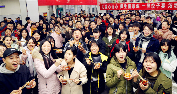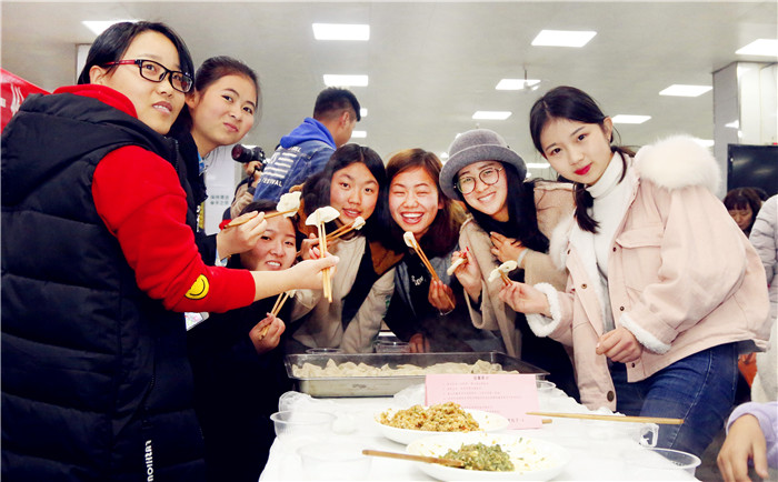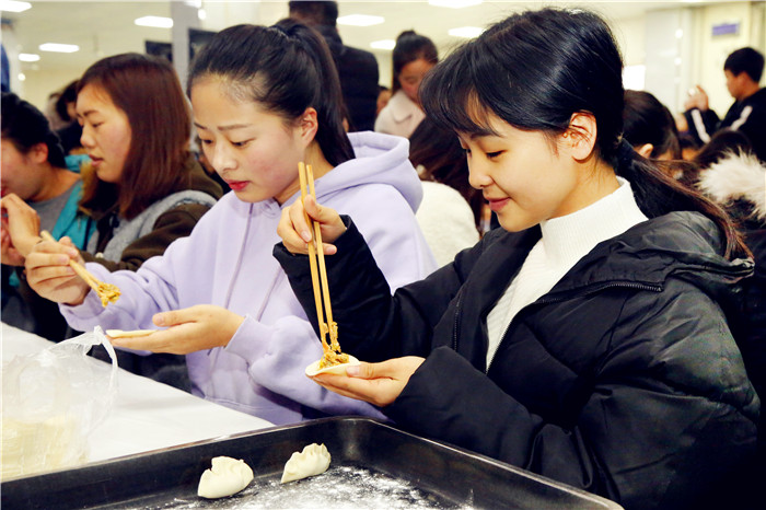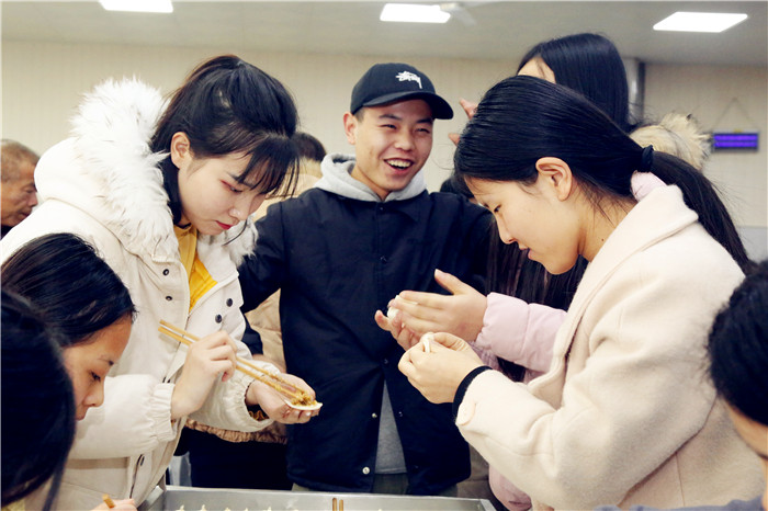 活动中老师同学们一起包饺子话家常,其乐融融,餐厅里洋溢着温暖欢快的气氛。一阵忙碌过后,大家都吃上了热腾腾的饺子,欢声笑语弥漫在活动现场,让师生感觉到节日的温暖,同时也丰富大学生生活。并借此机会弘扬我国传统饮食文化——包饺子。