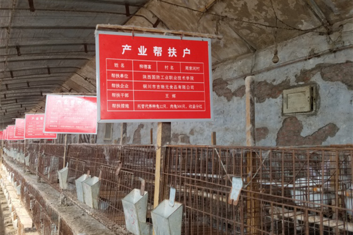 经王益区政府牵线,我校委托铜川市吉瑞元食品有限公司在辖区内选取周家河村柳德富等14户无劳动能力贫困户签订了托管代养帮扶协议,针对贫困户的家庭实际和所需帮扶的生活困难问题,通过“公司+基地+农户”托管代养模式带动贫困户参与产业发展,根据养殖收益给贫困户分红,切实增加贫困户收入,实现精准脱贫。