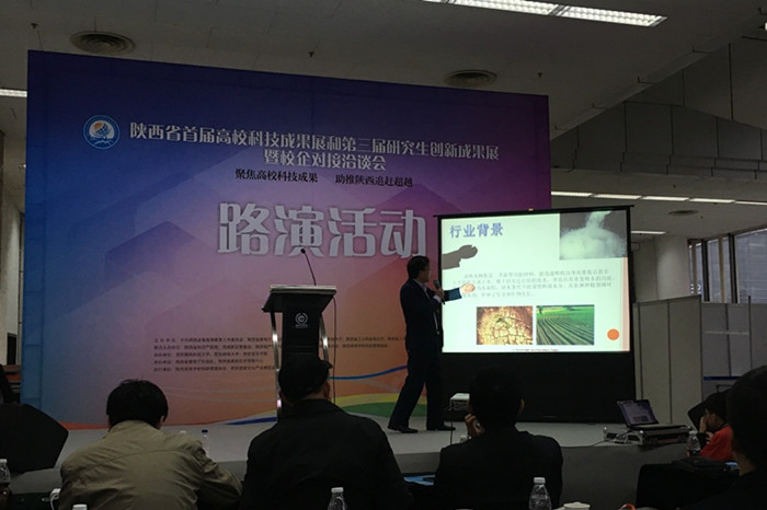 10月11日下午,我校 “环保型彩色高吸水树脂的生产技术”成果参加了展会的路演活动,成果发明人孙宾宾老师重点推介了该成果,项目路演引起了一些投资人和企业的高度关注,纷纷提问咨询。推介会后,陕西省产学研合作促进会技术转移部部长毛永刚、陕西大程资本投资经理范方博、陕西云岭生态科技有限公司董事长刘玉兰等还专程来到我校展台,进行咨询、索要样品、洽谈合作事宜。