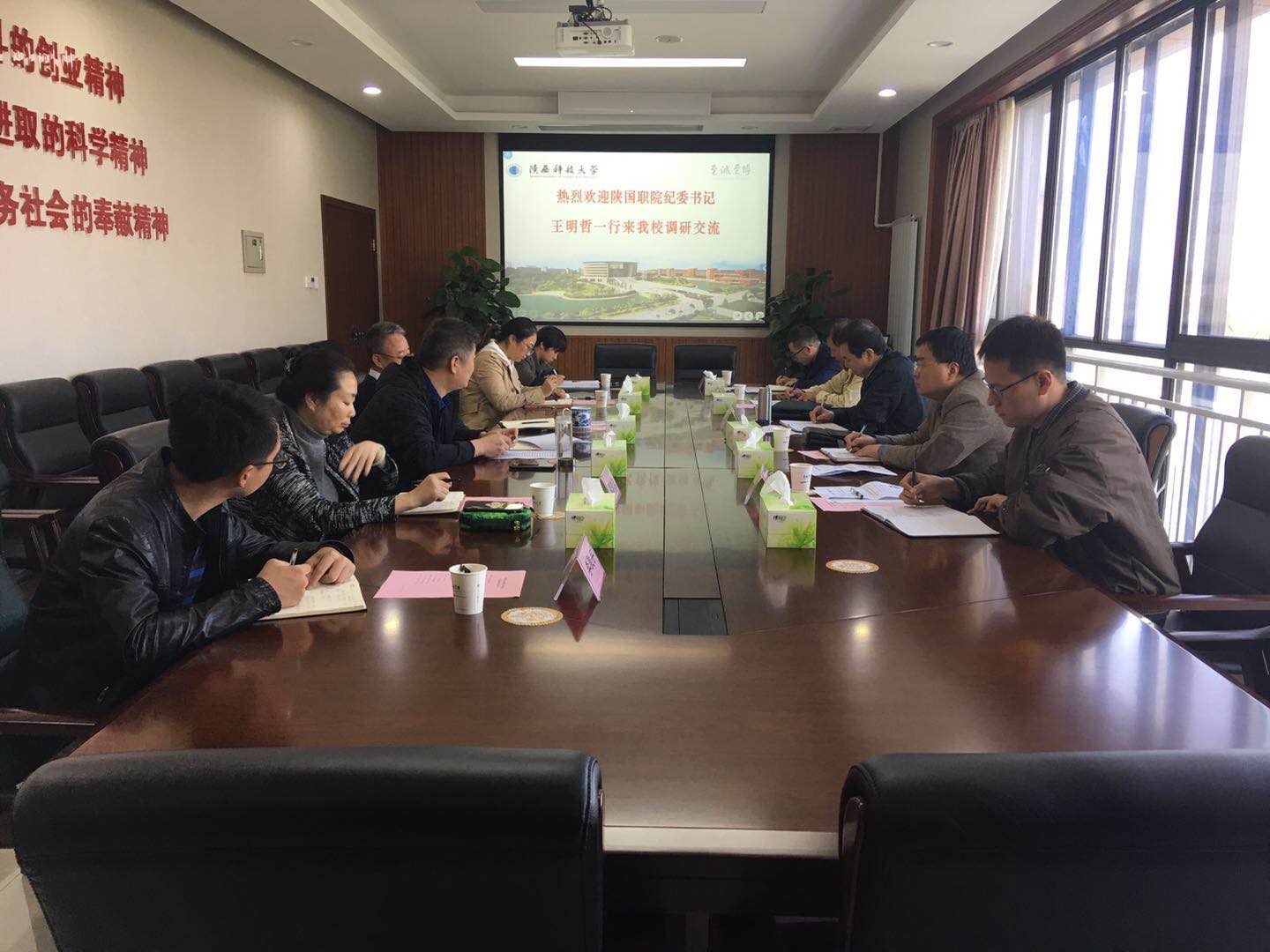 10月17日下午,学校纪委书记王明哲一行5人前往陕西科技大学调研学习。陕西科技大学纪委书记王为民及处室相关负责人员参加了此次调研交流活动。
