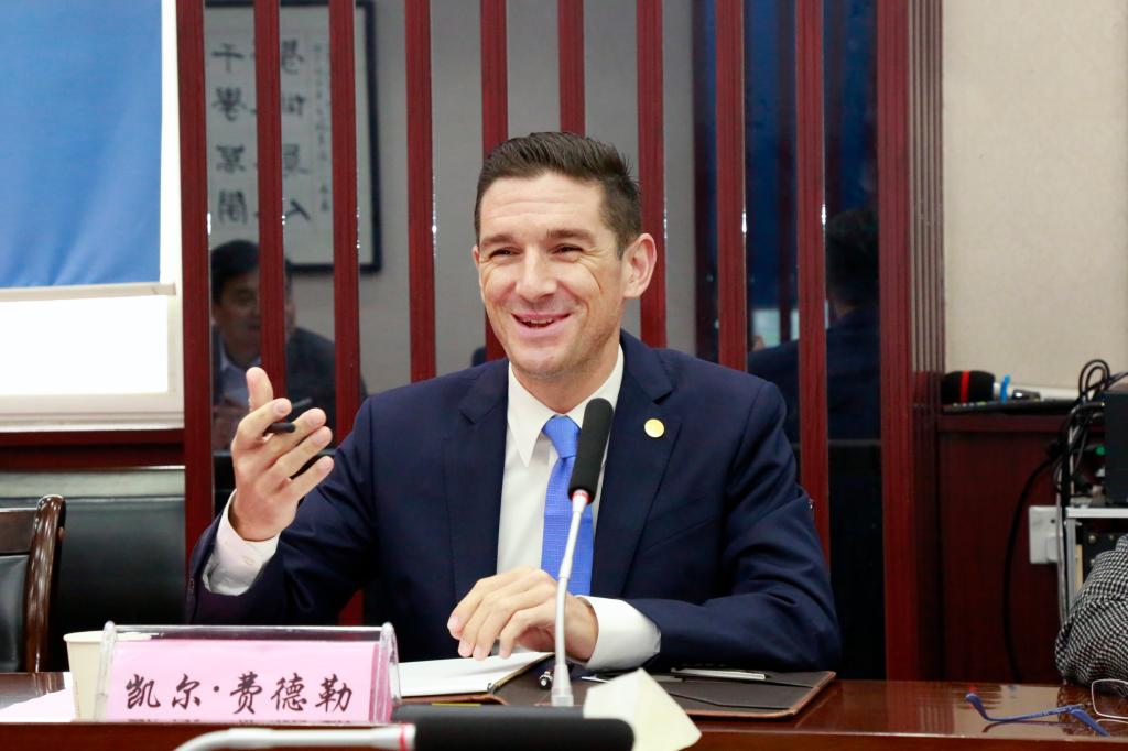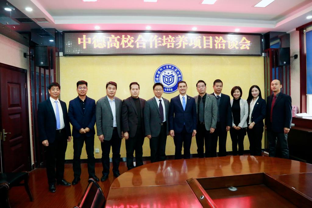 孟繁增副院长对凯尔·费德勒一行到校交流访问表示欢迎,对近年来我校教师赴国(境)外培训、访学情况进行了回顾,同时就高职教育国际化前景和“双高计划”给学校发展带来的机遇与挑战进行了深入分析,他指出,中德两国在职业教育领域交流合作基础深厚、成果丰硕,务实合作是中德双方高校合作的基本特征,应顺应我国高等职业教育发展趋势,加强中德高校间的深度合作交流,探索国际化合作的新路径,不断拓宽合作领域、创新合作模式,加快推进国际合作项目的落地实施,不断提升学校的人才培养水平和国际竞争力。