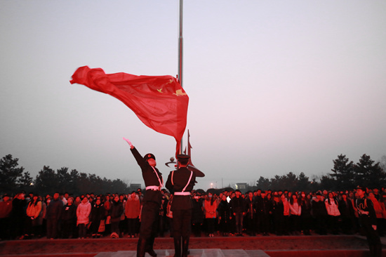 12月31日上午7点30分,微微寒风夹着细细薄雾拂过脸颊,我校分别在南北校区隆重举行2016年元旦升国旗仪式,全校师生参加了升国旗仪式。