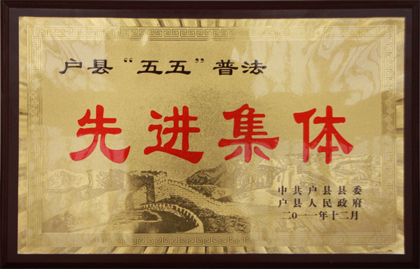 2011年12月16日,户县县委、县政府在户县“三鑫”大酒店,举行了“五五”普法总结表彰大会。我院调研员陈黛琴同志、保卫科长徐哲同志参加了会议。会上,我院被户县县委、县政府授予“五五”普法先进集体荣誉称号。