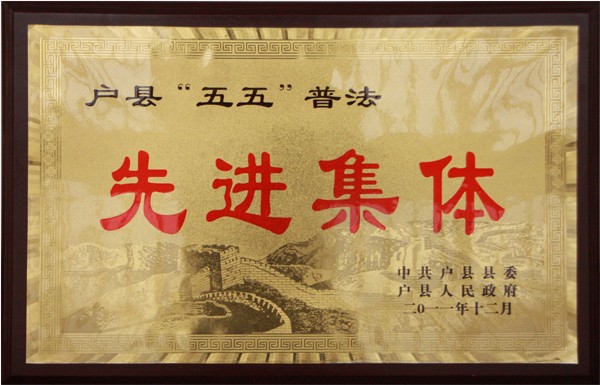 2011年12月16日,户县县委、县政府在户县“三鑫”大酒店,举行了“五五”普法总结表彰大会。我院调研员陈黛琴同志、保卫科长徐哲同志参加了会议。会上,我院被户县县委、县政府授予“五五”普法先进集体荣誉称号。