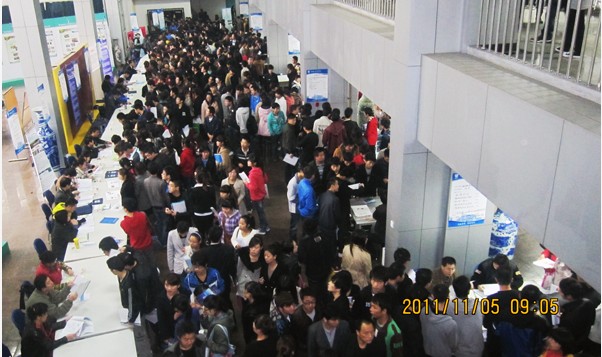 我院于2011年11月5日在北校区图书馆举办了“2012届毕业生就业招聘会”。本次就业招聘会共邀请到省内外企事业用人单位79家,其中来自西安、宝鸡、咸阳、渭南、安康、汉中等省内的单位67家,向我院毕业生提供招聘岗位2513个。用人单位通过多媒体演示、专场宣讲、现场面试等多种途径与毕业生沟通交流,会上直接签约213人,形成就业意向961人。和往年相比,今年的岗位质量有明显提高。
