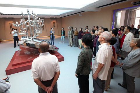 图1 张文斌书记陪同老同志参观国防科技展览馆