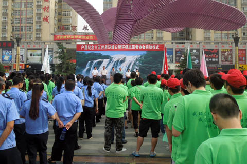为纪念“六五”世界环境日,弘扬环保志愿者精神, 6月5日上午户县环境保护局组织开展的“户县环保志愿者协会关于纪念六五世界环境日暨环保志愿者协会启动仪式”在户县人民路广场隆重举行。院团委组织机械工程学院志愿者及团委志愿者协会同学共89人参与了启动仪式,并作为户县环保志愿者协会分会接受了与会领导授旗。