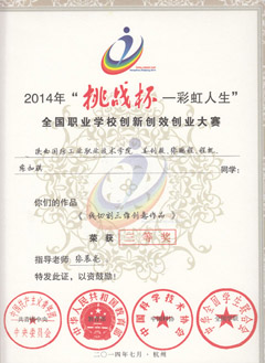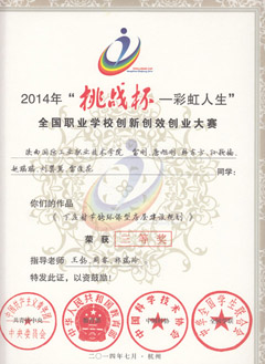 2014年“挑战杯-彩虹人生”全国职业学校创新创效创业大赛是由共青团中央、教育部、中国科协、全国科联主办全国性赛事,旨在贯彻落实党的十八届三中全会提出的“要加快现代职业教育体系建设, 深化产教融合、校企合作, 培养高素质劳动者和技能型人才”的精神, 顺应经济社会发展需要, 进一步增强职业学校学生的创新创效、就业创业和职业转换能力。
