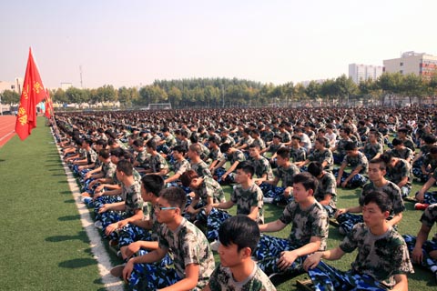 会后,全体新生迅速投入到了紧张有序的军训之中。