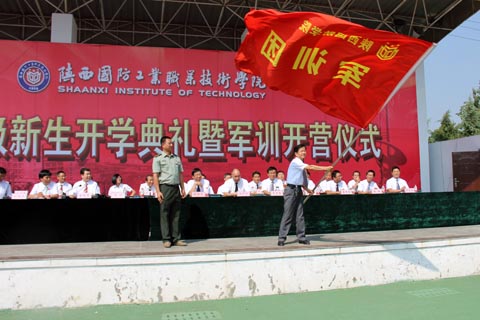 会上,院党委书记张文斌向部队代表授军训团团旗,院长张权民宣布2014级新生军训正式开始,副院长刘敏涵致辞。