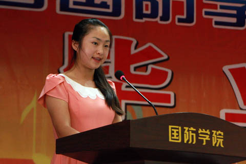 图6 机电3113班毛敏锐同学作为毕业生代表发言