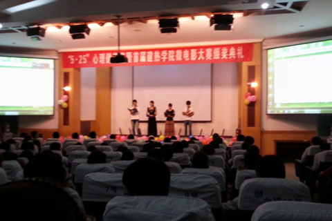 6月6日晚,由建筑与热能工程学院举办的以“和谐校园 阳光心灵”为主题的“5.25”心理健康节暨首届建热学院微电影大赛颁奖典礼在南区信息楼报告厅隆重举行。院团委书记解辉老师,建热能学院党总支书记吉欣民老师,院团委心理咨询中心冉丑龙老师,建热能学院学生干事王勃老师,分院辅导员老师及各参赛队伍学生代表等共300余人参加了典礼。