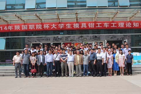 5月24日下午,陕西省模具工业协会2014年“陕国职院”杯大学生模具钳车工工理论知识大赛在我院开幕。陕西省工业经济联合会副会长庄永杰,陕西省模具工业协会秘书长陈博源、副秘书长赵兴、专家组组长王鼎泉,我院副院长刘敏涵、实践教学管理处处长张鑫、汽车学院院长史朝辉出席了开幕式。来自陕西工业职业技术学院、西安航空职业技术学院、西安理工大学高等技术学院、宝鸡职业技术学院、西安职业技术学院及我院的60名参赛选手将参加本次比赛。