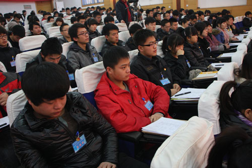 会上,学院党委副书记、纪委书记王明哲同志向多年来对我院团学工作给予坚强领导和大力支持的省国防团工委领导以及兄弟院校团学组织负责人的莅临表示诚挚的欢迎和衷心的感谢,向全院团员青年和广大学生致以亲切问候!他充分肯定了自五次团代会、学代会以来,我院团学工作所取得的成绩的同时,并指出,在党的十八大胜利闭幕、全面建成小康社会征程开启的时刻,我院团代会、学代会的召开,对于更好地团结和带领全体团员青年认真学习党的十八大精神,圆满完成国家示范院校建设任务,全面提升青年学生的综合素质,促进青年更好地成长成才,都具有极其重要的意义。他结合党的十八大对青年工作提出的要求和全面建成小康社会的历史任务,向全院团组织、团员青年和全体学生提出了四点希望:一是希望共青团组织充分发挥密切联系青年的组织优势,着力推进扎实有效的思想教育工作;二是希望共青团组织和学生组织紧密围绕学院人才培养的总体目标,大力开展丰富多彩的校园文化活动;三希望共青团组织和各级学生组织不断提高整体工作层次,努力构建全国高职院校一流的青年成长平台;四是希望广大团员青年和全体学生树立理想、坚定信念,发奋学习、立志成才。