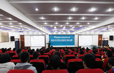 大赛邀请职业生涯规划师、陕西省就业指导课名师、咸阳师范学院的刘伟老师和我院的职业生涯规划与就业指导教研室四位教师担任大赛评委。在比赛过程中来自各分院系的八名同学分别从自我认知、环境探索、职业发展路线、评估与调整等方面,以神采飞扬的演讲、详实和有理、有力、有据的职业、创业规划作品征服了评委和观众。咸阳师范学院的刘伟老师在选手点评中对我院学生的出色表示赞赏;王明哲副书记进行了总结讲话,对本次大赛进行了肯定,并用自己职业生涯发展的亲身感受勉励现场观赛的学生。