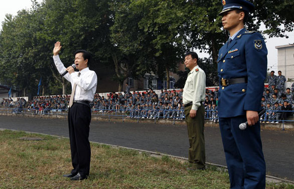 图2 党委书记张文斌检阅受训学生
