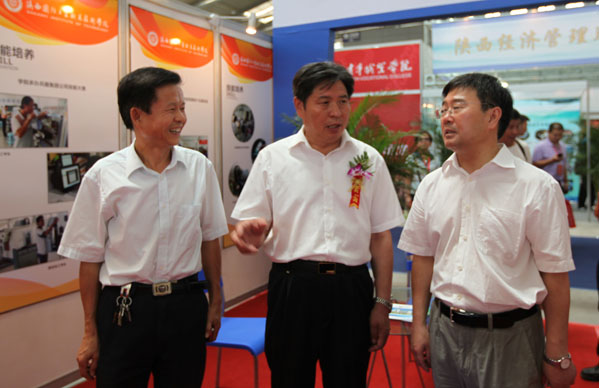 上午十时许,陕西省委教育工委副书记、省教育厅厅长杨希文,副厅长郭立宏等领导一行步入我院展区参观并指导工作。杨希文对我院精心设计、积极参展予以充分肯定,对学院办学实力和办学特色给予高度评价。