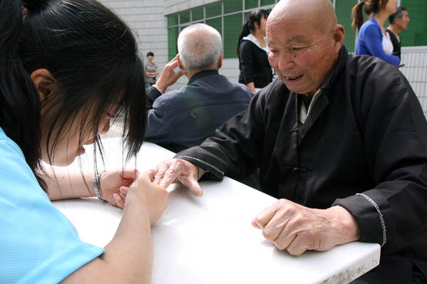 带着热情,带着祝福,志愿者们进入了福利中心,与老人们进行了亲切的交谈,陪老人散步,为老人表演节目,帮老人的打扫卫生。其中,一切志愿活动井然有序,却不失温馨。