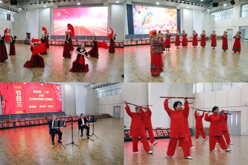 “金秋十月丹桂香,岁岁重阳情意长。” 为庆祝中华人民共和国成立75周年,进一步深入贯彻落实习近平总书记关于老龄工作重要指示批示精神和党的二十大、二十届三中全会精神,大力弘扬中华民族尊老爱老敬老优良传统美德,营造全社会养老孝老良好氛围。10月11日上午,我校在博远楼四层小剧场组织开展“银龄歌舞庆华诞·桑榆芳华迎重阳”茶话会活动,为70岁以上退休老同志和居民组织集体生日会,并排演文艺联欢会,让老同志们度过了一个喜庆祥和的重阳节。