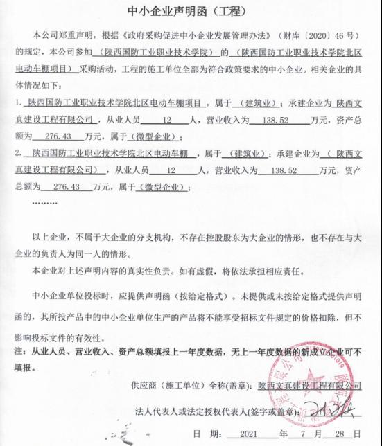 附:陕西文真建设工程有限公司小微企业声明函