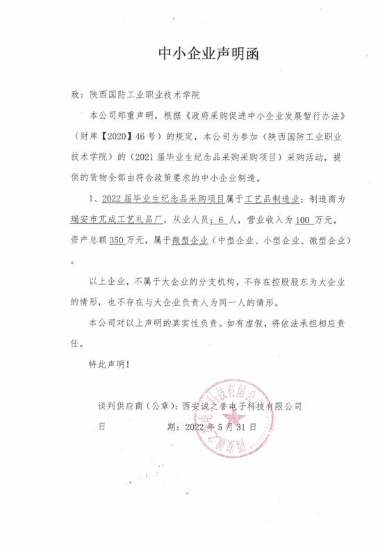 附:西安诚之誉电子科技有限公司中小企业声明函