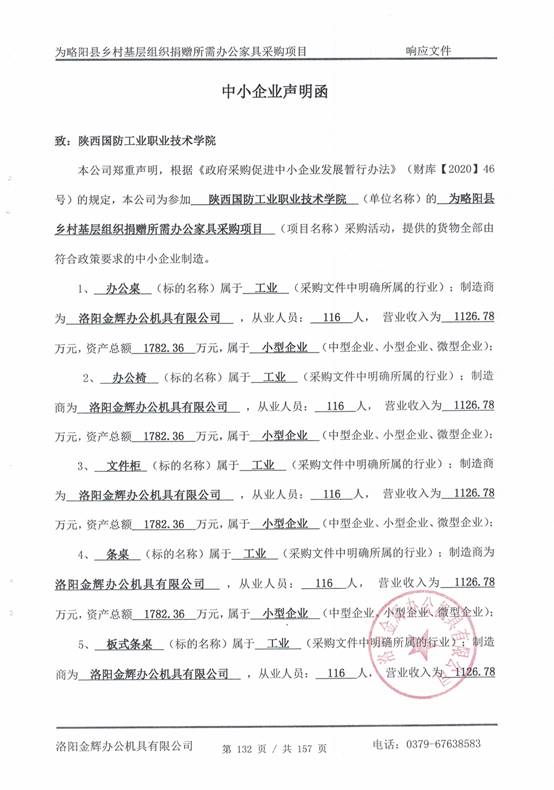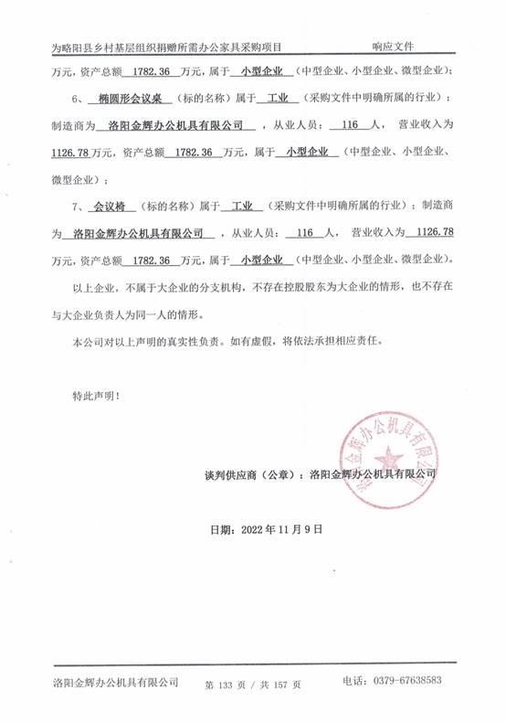 附:洛阳金辉办公机具有限公司中小企业声明函