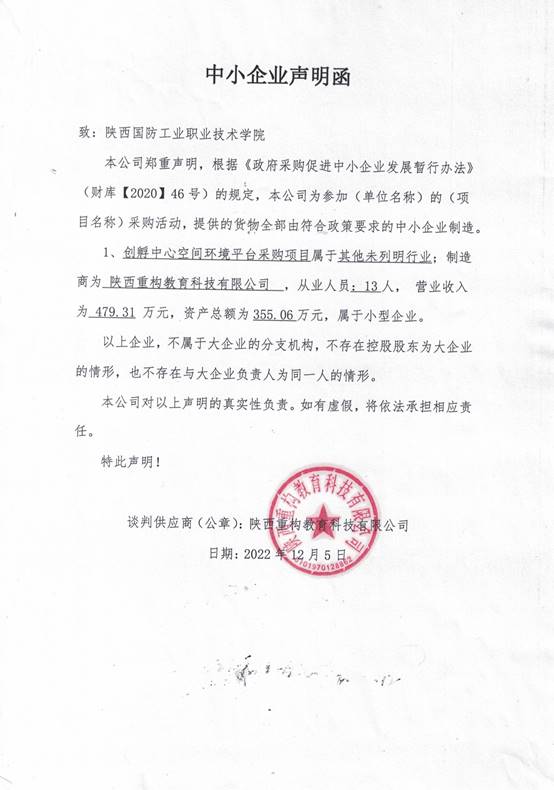 一、采购项目名称:创孵中心空间环境平台采购项目